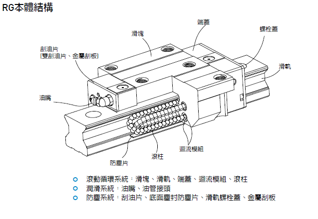 滾柱型直線導軌的結構如下: