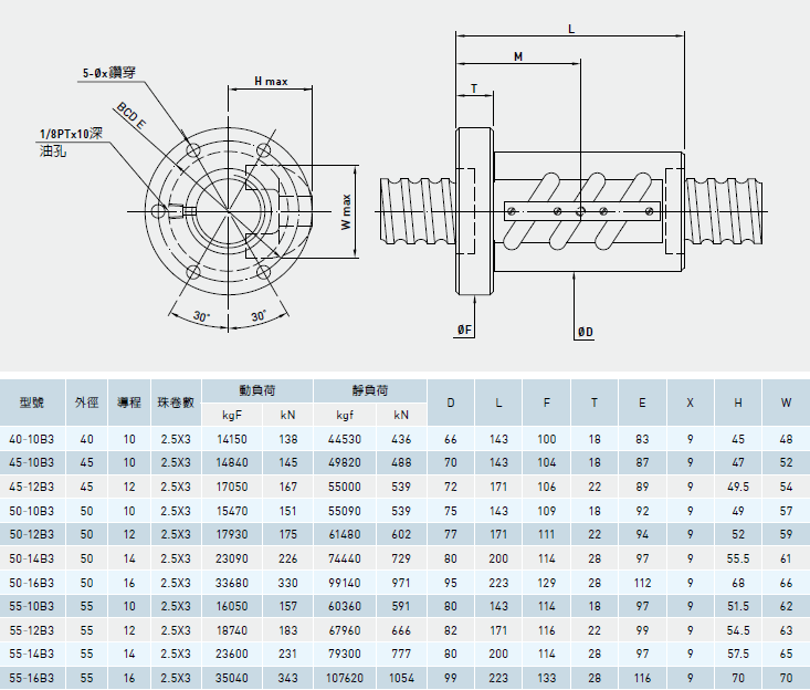 重負荷滾珠絲杠規格表