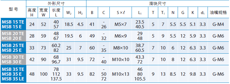 PMI-銀泰直線導(dǎo)軌MSB35TE滑塊是一款低組裝法蘭輕載型滑塊,也被稱(chēng)作帶耳朵的滑塊,滑塊的尺寸為100*78,滑塊上只有2個(gè)M10的螺紋孔,其孔距為82,MSB35TE滑軌的安裝孔距為80,MSB35TE滑塊與滑軌的組合高度為48。所有尺寸完全與臺(tái)灣上銀直線導(dǎo)軌EGW35SA相同。兩者之間可相互替換,在防塵方面,銀泰直線導(dǎo)軌比上銀直線導(dǎo)軌做得更佳出色。性?xún)r(jià)比更高.