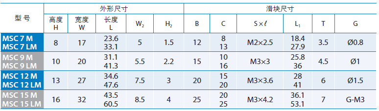 MSC15LM詳細參數如下圖所示: