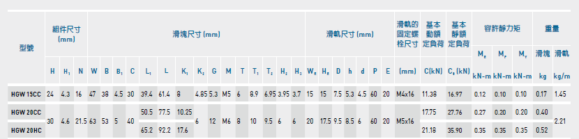 上銀直線導軌HGW20HC,超重負荷直線導軌HGW20HC