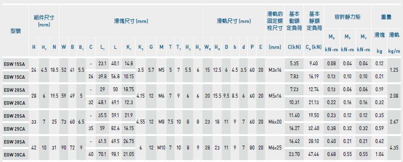 臺灣上銀導軌EGW30CA,臺灣上銀直線導軌EGW30CA東莞上銀大量現貨供應