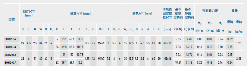 東莞上銀導軌EGH20CA,上銀直線導軌EGH20CA