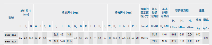 EGW15SA上銀滑塊參數(shù)如下: