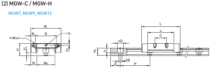 上銀滑塊MGW12C更多詳細參數如下: